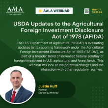 AALA will host its 47th Annual Agricultural Law Educational Symposium (Co-Hosted by the American Agricultural Law Association and the National Agricultural Law Center) on November 5-7, 2026, in Dallas, TX.