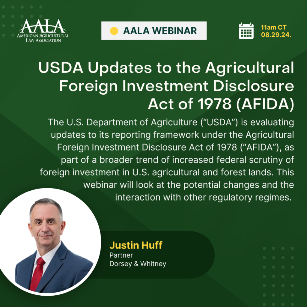 Webinar: USDA Updates to the Agricultural Foreign Investment Disclosure Act of 1978 (AFIDA)